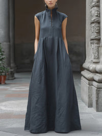 Sleeveless Stand-Collar Maxi Dress