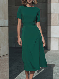 Tailored Short-Sleeve Waist-Defined Midi Dress