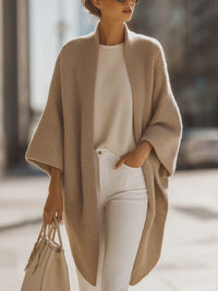 The Sand Beige Oversized Knit Cardigan from Mooyius embodies effortless sophistication with a touch of urban ease. Designed in a soft, textured knit, it offers the perfect balance of warmth and breathability, making it an ideal layering piece for transitional weather. Its cocoon-like drape and open-front silhouette create a fluid, elegant shape, while the dropped shoulders and voluminous sleeves enhance its relaxed appeal.